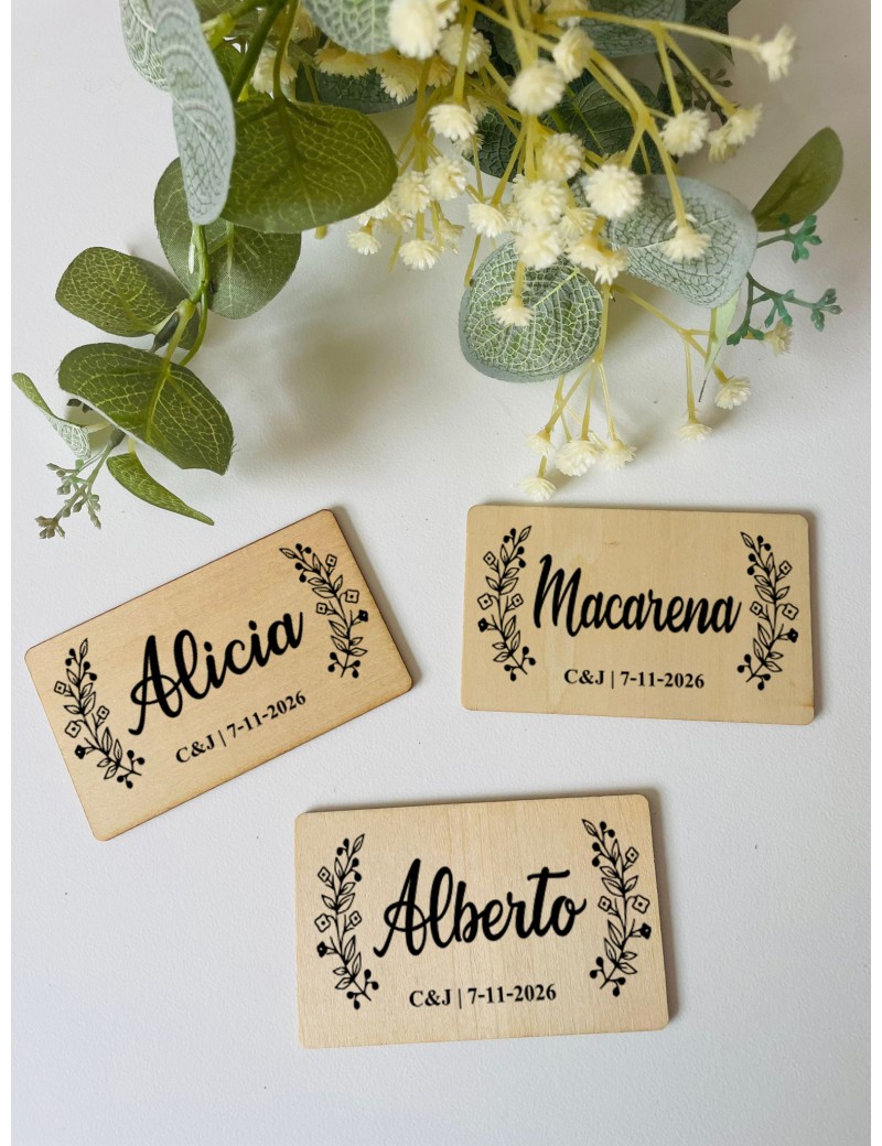 Elaboramos en madera, el nombre de cada invitado, de forma que encuentre su sitio, se sorprenda del detalle y a la vez se lleve un bonito regalo.